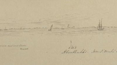 في عام 2014، وبينما كانت لايزا روجرز، المديرة بباركر لانغهام، تقلب صفحات أرشيف المتحف البحري الوطني، وقعت عينها على رسم باهت بقلم الرصاص يكشف بهدوء عن جزء من التاريخ البصري لأبوظبي. يحمل الرسم توقيع ضابط البحرية البريطاني الملازم ويش، ويعود إلى منتصف القرن التاسع عشر. لا يظهر في الرسم حصن قائم بذاته، وإنما صف ضامر من أبراج المراقبة التي تحرس سواحل الجزيرة، لا يزال أحدها قائماً بالقرب من جسر المقطع، في حين اختفت الأبراج الأخرى منذ زمن بعيد.