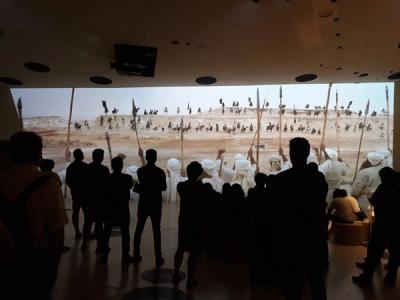The stories told in each gallery are introduced by spectacular immersive art films, specifically made for the museum, projected directly onto the angular, sloping walls. The films are illustrative and poetic meditations on Qatar’s story. One film, for example, tells the story of the unification of the Qatari tribes. Another evokes the physical and emotional challenges of pearl diving. But what really unifies the museum are oral histories – the voices of Qataris themselves. These interviews, which can be found in every gallery, set the tone – this museum is about the people of Qatar, in their own words. Together, the films and oral histories vividly capture the dynamism of Qatari culture. The result is a visitor experience that feels like a journey through a three-dimensional oral and visual history of Qatar.