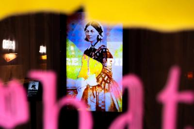 The centrepiece of this exhibition was an AI artwork – an image of Nightingale that changed as visitors contributed their views on her.